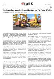 News Link: Maritime lawyers challenge Chattogram Port’s tariff hike