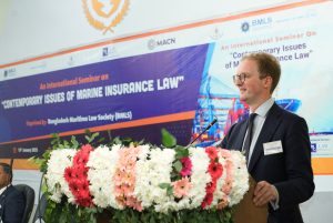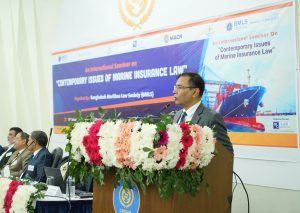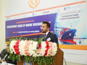 Mr. Mohiuddin Abdul Kadir, President of MCLaw Services Ltd. presenting his keynote paper on ‘Law as applicable to Maritime and marine Insurance Claims in Bangladesh’.